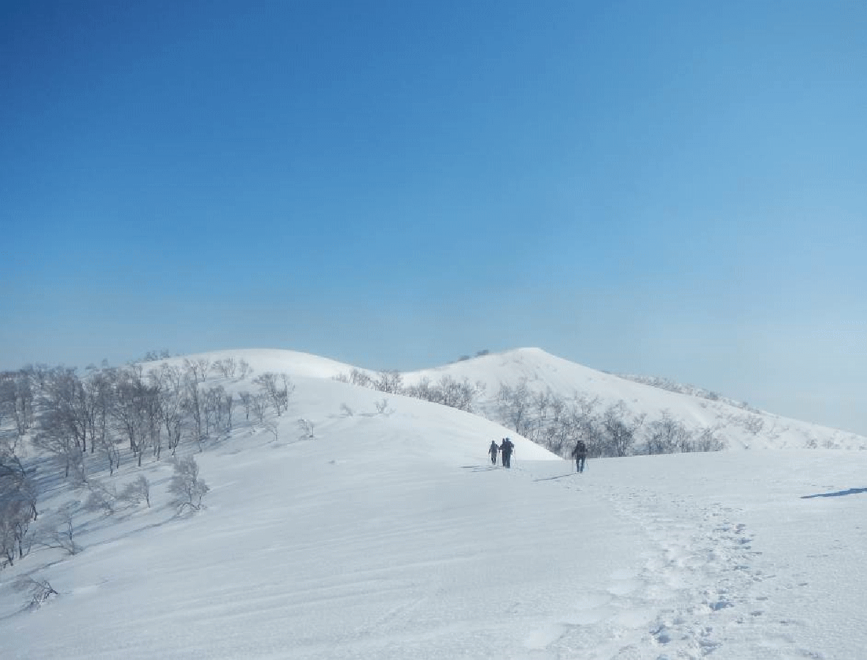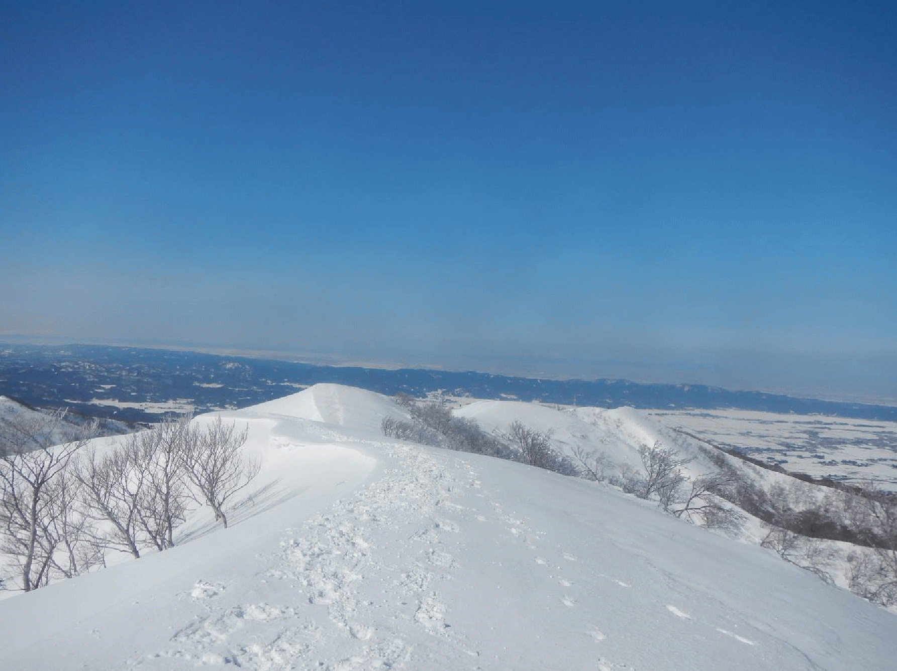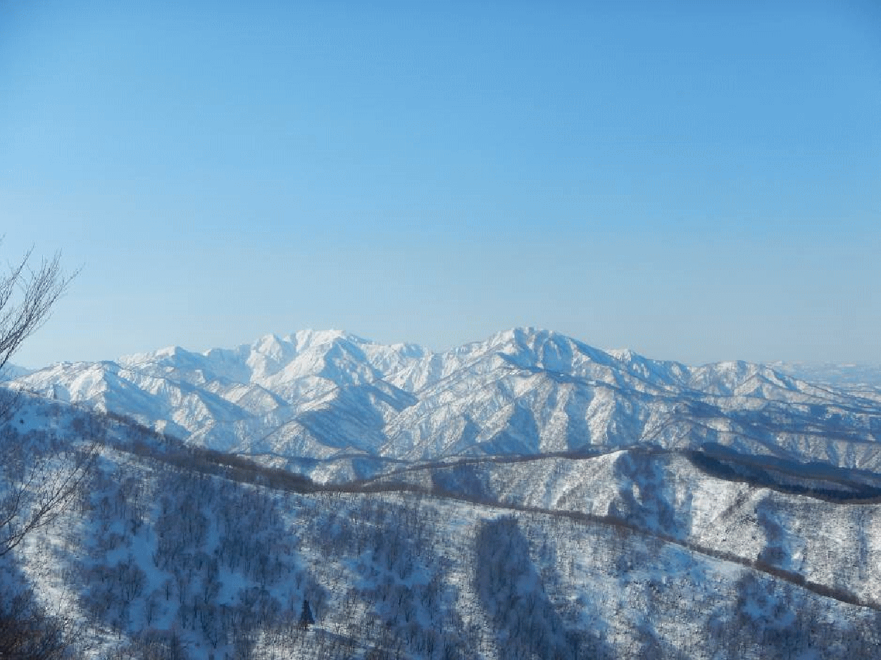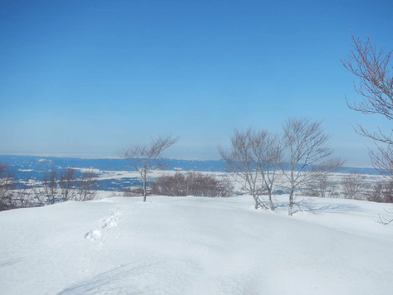 菅名山塊は標高千メートルに満たない。尾根もそれほど複雑でなく、主稜線はなだらか。積雪期は私にとって楽しめる山域となる。今回は特に素晴らしい天気で、雪は適度に締まっており歩きやすい。春陽はすべてを輝かせて見せてくれる。なぜか休むのがもったいないと思ってしまうほどで、いつまでもどこまでも歩けてしまいそうだった。