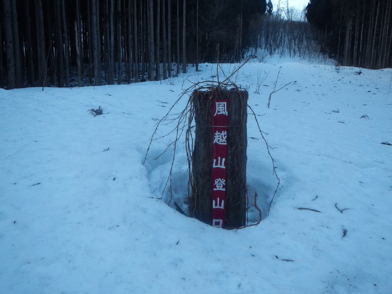 <風越山登山口の道標。夏道があったんだ!>