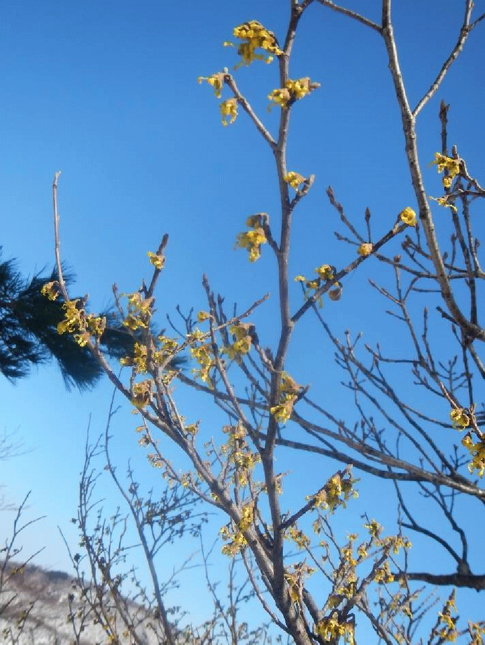 途中マンサクの花が咲いていた。やっと春が来る。冬が終わる。春だ〜〜〜♪