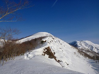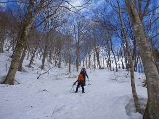 取り付きから急登で、雪は固くスノーシューの爪ではかなり悪戦苦闘しました。大変でした。(アイゼンがあれば・・・・)