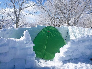 1時間かけて★★★★★のテントを設営。私は現場監督?で、お2人が童心?に帰って、夢中?で雪のブロックを建築していました。本当に快適でした。お疲れさまでした。ありがとうございました。