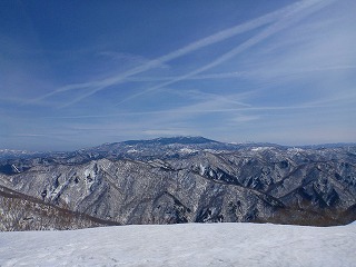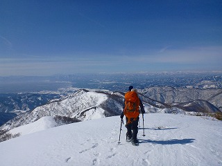 <絶景の中を下ります> <吾妻連峰も雪が少ない>