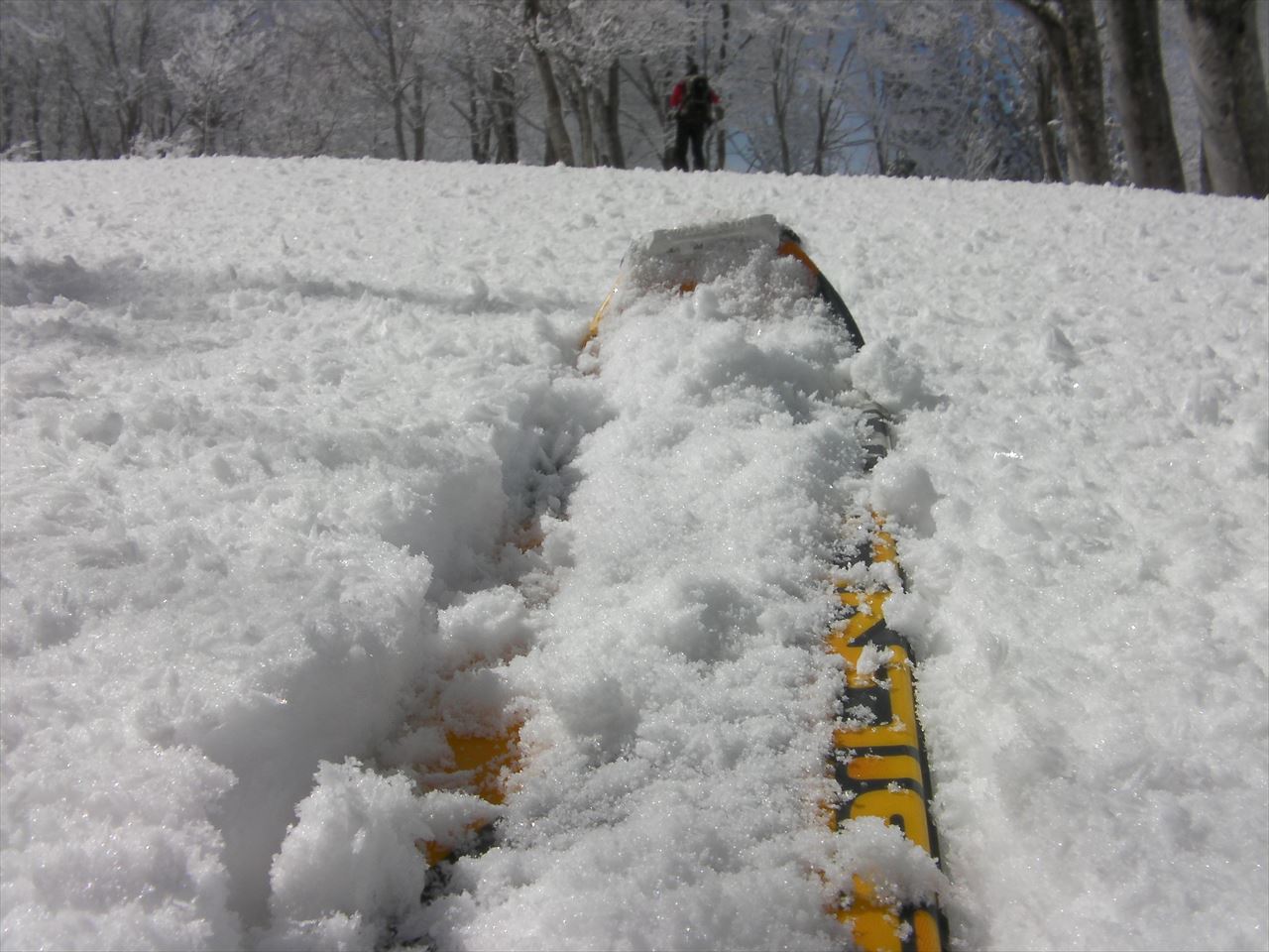締まった雪におそらく昨夜降った雪が5p少々積もっている.