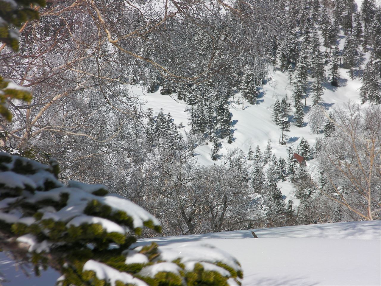 この日差しなのに帰る頃になっても上の方では雪はそれほど腐っておらず,それなりに滑る.