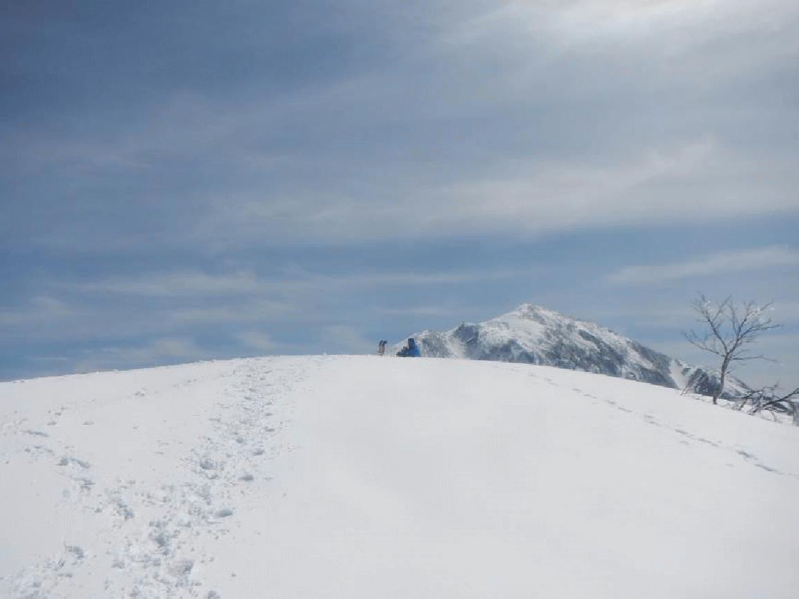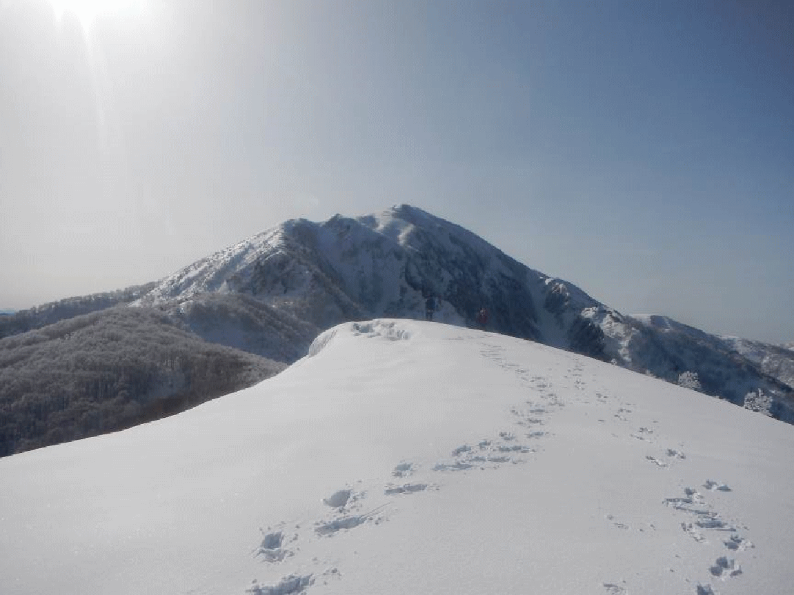 <もちがかべの上から荒島岳に続く雪稜>