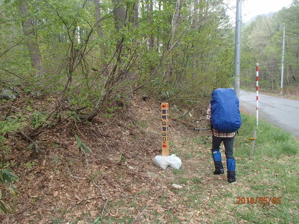 <5/5>小豆温泉駐車場発 9:45 – 窓明山登山口発10:05頃 –巽沢山11:20 -- 家向山着13:20頃(テント設営)