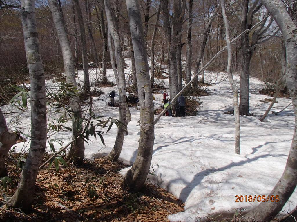 登頂組が戻ってきて休憩した後は、国体コースを下る。途中、コシアブラを取りながらゆっくりと下ったが午後3時頃には、小豆温泉の駐車場戻ることができた。