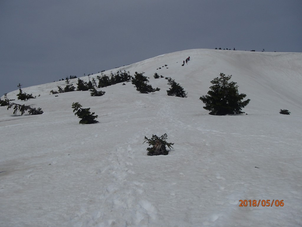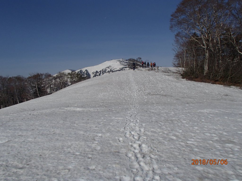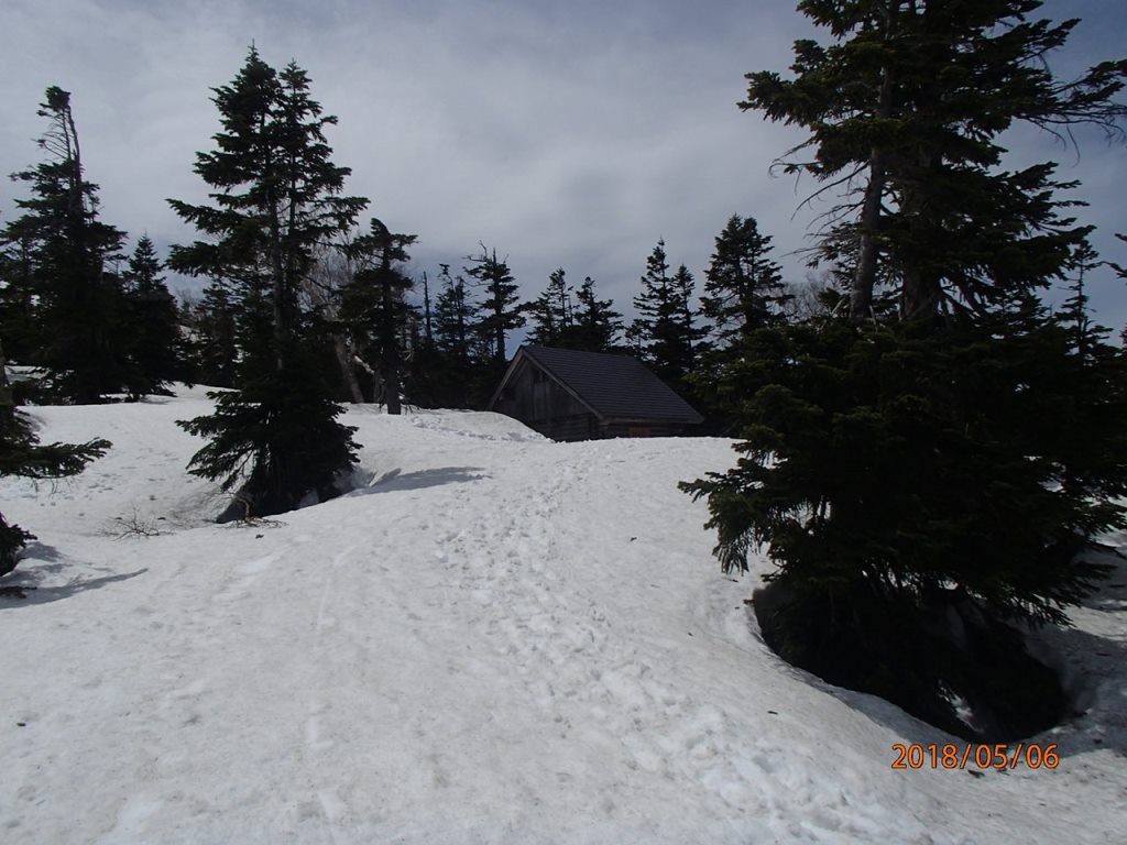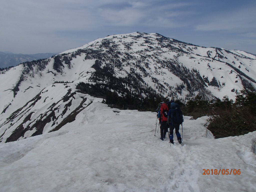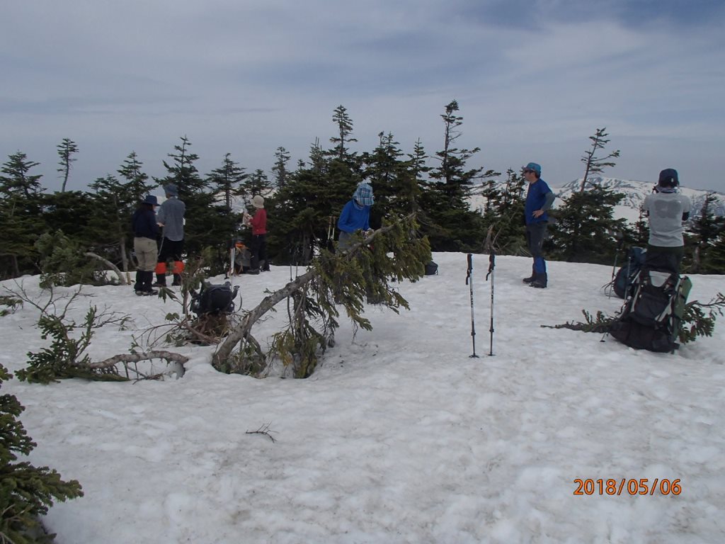 <5/6>家向山(テント場)発7:10---窓明山山頂9:10 ~9:30 ----三岩岳避難小屋-10:50~12:45(三岩山頂往復4人11:00-12:10)--- 三岩登山口 14:50---小豆温泉駐車場着15:00