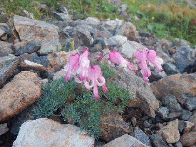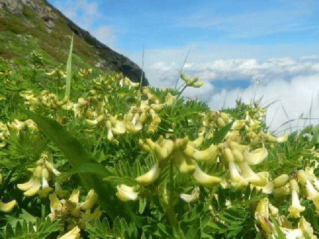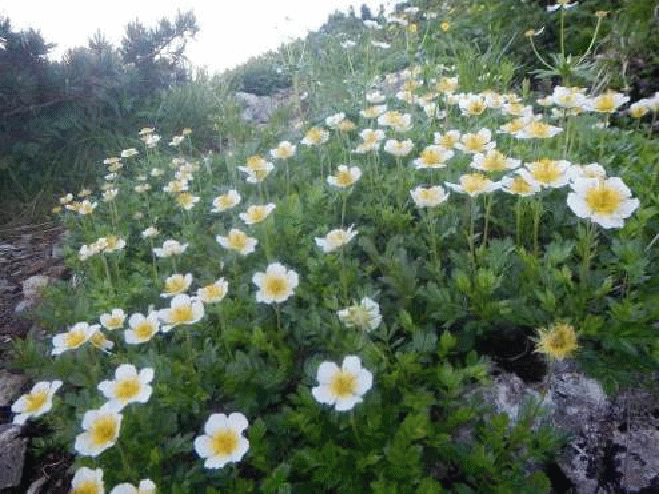 ミヤマタンポポ、イワオウギ、クロユリ、ミヤマオダマキ、ミヤマクワガタ、イブキジャコウソウ、チングルマ、