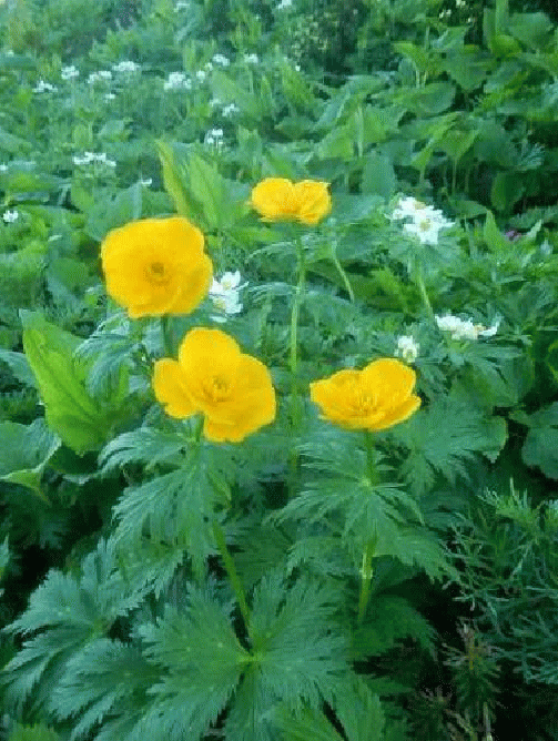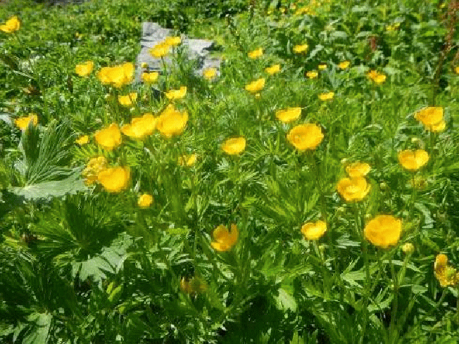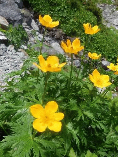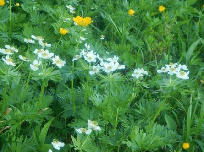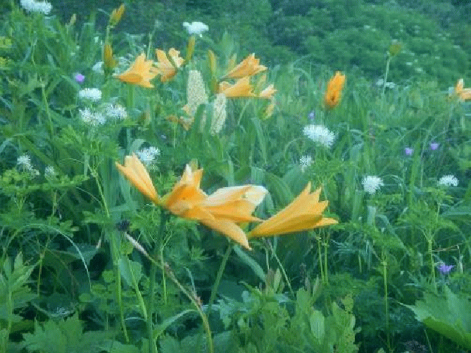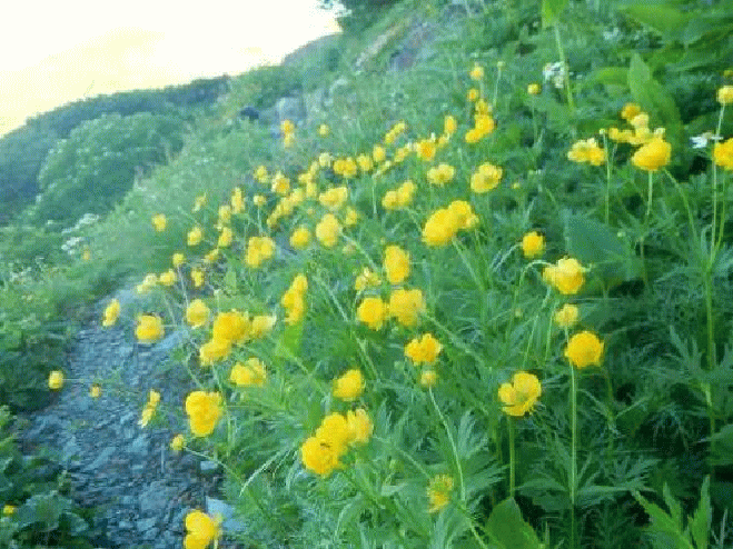 【出会った花々】キヌガサソウ、クルマユリ、ウルップソウ、ミヤマキンポウゲ、ハクサンイチゲ、シナノキンバイ、