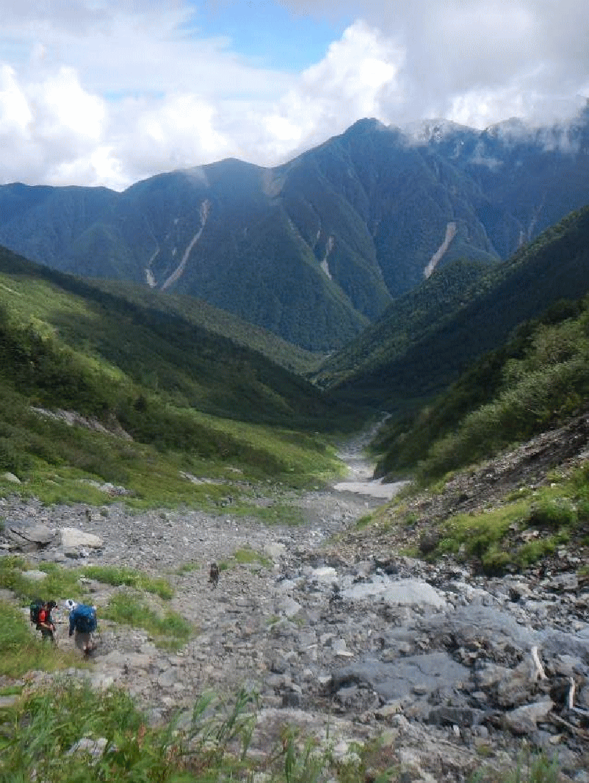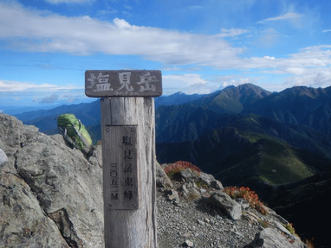 昔からの山仲間の間で思い出深い山行の上位にあがるのが1995年9月の会山行だった塩見岳だ。担当はsueさん。台風が接近中だったが、総勢9人のパーティーとなった