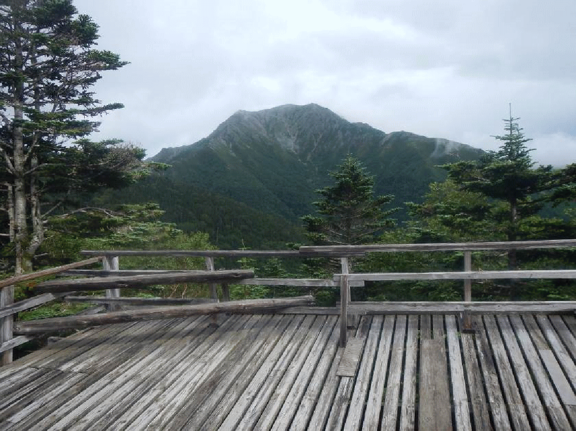 翌日は暗いうちに三伏峠を出発。塩見岳まで600mほどを登る。雲がなかなか晴れてくれなかったが塩見岳からは展望が得られた。蝙蝠岳のピークが目の前にある。あの時も蝙蝠岳に行ってみたい、と思っていたはず。23年ぶりに塩見岳に登頂し、蝙蝠岳とそのピークから二軒小屋に続く蝙蝠尾根を歩いてみたい、という思いが再燃した。縦走路=仙塩尾根は熊ノ平小屋まで小さなアップダウンを繰り返し標高を下げていく。ガスの中に入り雨が降り出す前に小屋へとただ黙々と歩き、夕立の前に小屋に着いた。