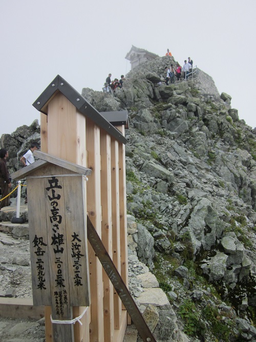 30分登ると渋滞で動きが止まった。危険な個所の登りで渋滞になり、雄山到着に思ったより時間がかかった。
