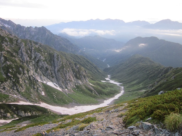 歩いてきた山を振り返る
