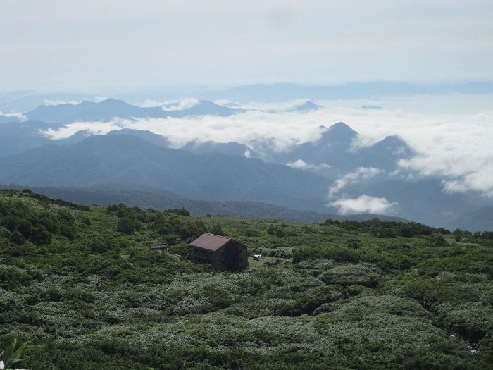 新潟を4時に出発。Tさんの運転で順調に3時間半で鳥海山の登山口(湯ノ台口)に到着。下界は雲海が広がっていました。駐車場にはトイレもあり、支度をして出発です。