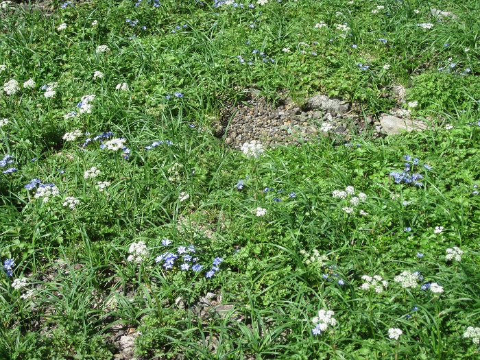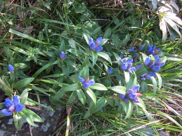 待ち合わせの河原宿小屋跡へ一気に下っていく。振り返ると、曇っていた空が、ブルー一色に・・・。もう少し、頂上にいたっかたな・・・。