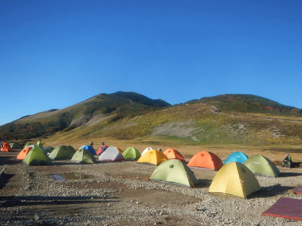 日が短くなってきているので少しでも時間の余裕を持ちたく、暗いうちから歩き始める。まずは登山道がより整備されている白馬大池ルートから入り、鉱山道を下りることにした。天狗の庭の手前でライトが要らなくなり、登山者があふれる白馬大池に着いた。やや肌寒く感じられるが、まぶしいくらいの陽が降り注いでいた。