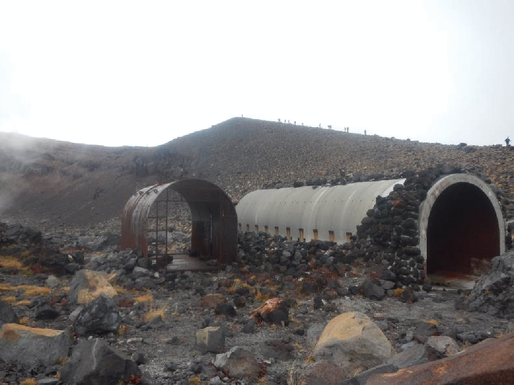 <シェルターまで下りてきたらガスが晴れた。第2外輪と前掛山>