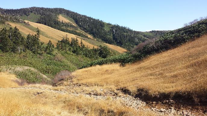 《割引沢 登山道からすぐに沢筋に降りられる》
