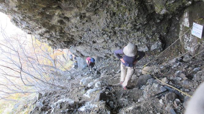 《斜上バンドの最後は半分洞窟のようなところとなる》