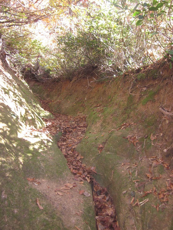 登ってきたばかりなのに、さんざん考えて戻ることに。落ち葉の上を必死に見ながら下りていくと、下から登ってくる二人組が・・・