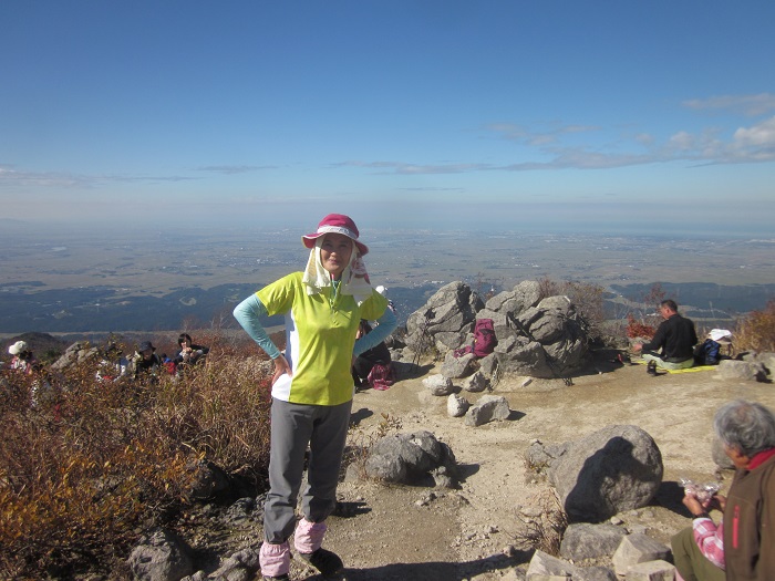 所々ぬかるんでる登山道を登り五ノ峰へ。山頂には沢山の人が休憩中。さえぎる物がなく新潟平野が一望に。景色いいなあ・・・