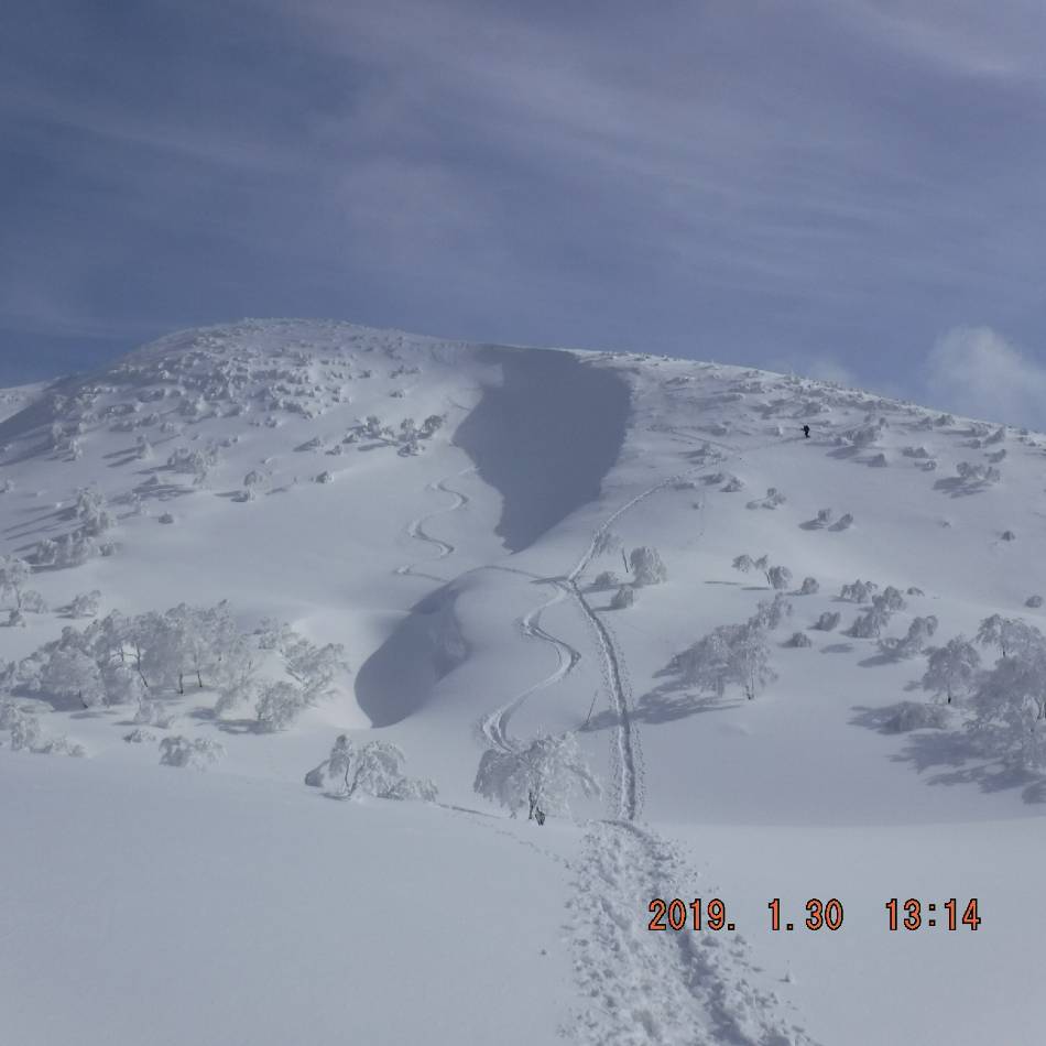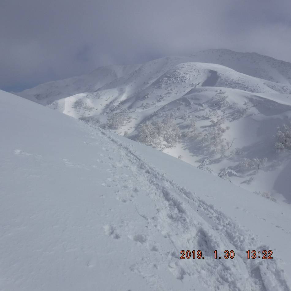 1月10日、下越の山でやっとまともな雪が降ったので二王子岳へ偵察に行く。林道から湿った雪で30cm位のラッセルで神社まで1時間半以上、4時間以上かかっても一王子まで届かなかった。帰りの滑りも最悪、やはり細めのスキー板で締め具スリーピンは私のレベルでは深雪で使いこなすのは無理のようだった。
