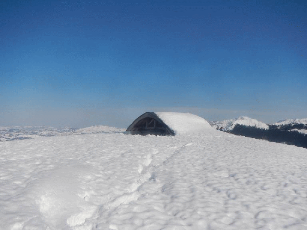 小出インターからすぐの干溝集落の宝泉寺の横から登山道が始まっている。展望の良い尾根道が大力山までつながっていた。東屋があるピークが山頂とされているが、地図上では奥のピークとなる。八海山が大きく見え、中ノ岳、駒ヶ岳の稜線が目の前に広がっていた。午前中は逆光なのが残念。