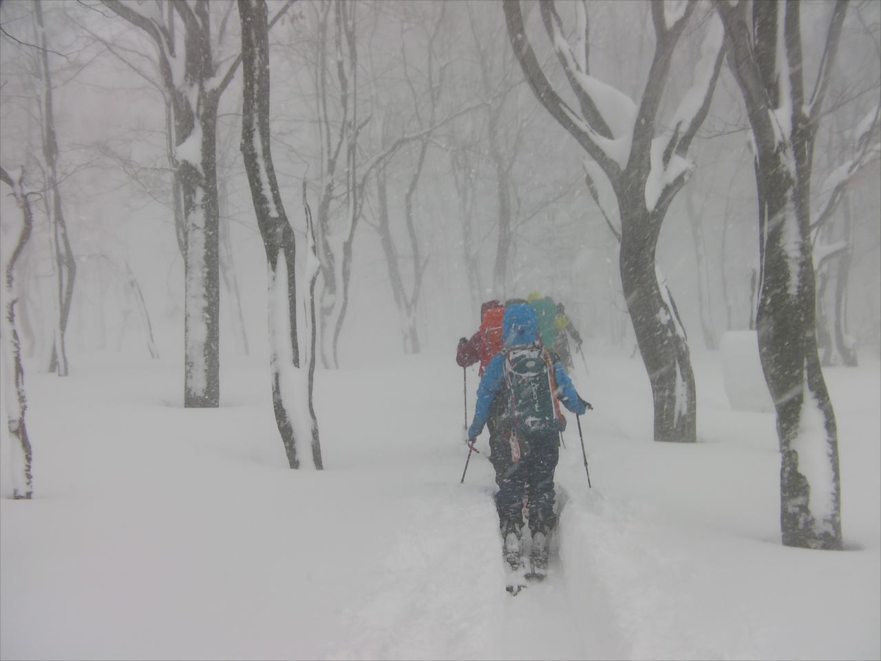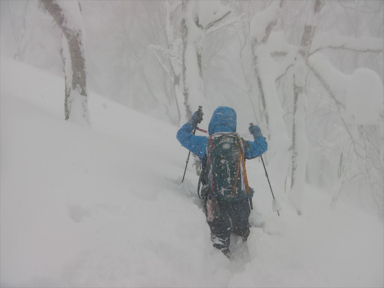 当然先頭は,N潟山岳会精鋭約2名がラッセルする.