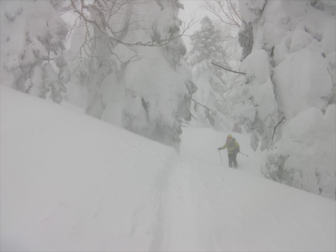 それでも,ところどころに現れる厳しい登り返しを何とかやり過ごして滑っていく.