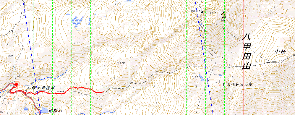 【実録時間】 酸ヶ湯(標高880m)09:56 − 標高1050m付近 11:34 <昼の憩い> 13:04 − 取り付き13:48