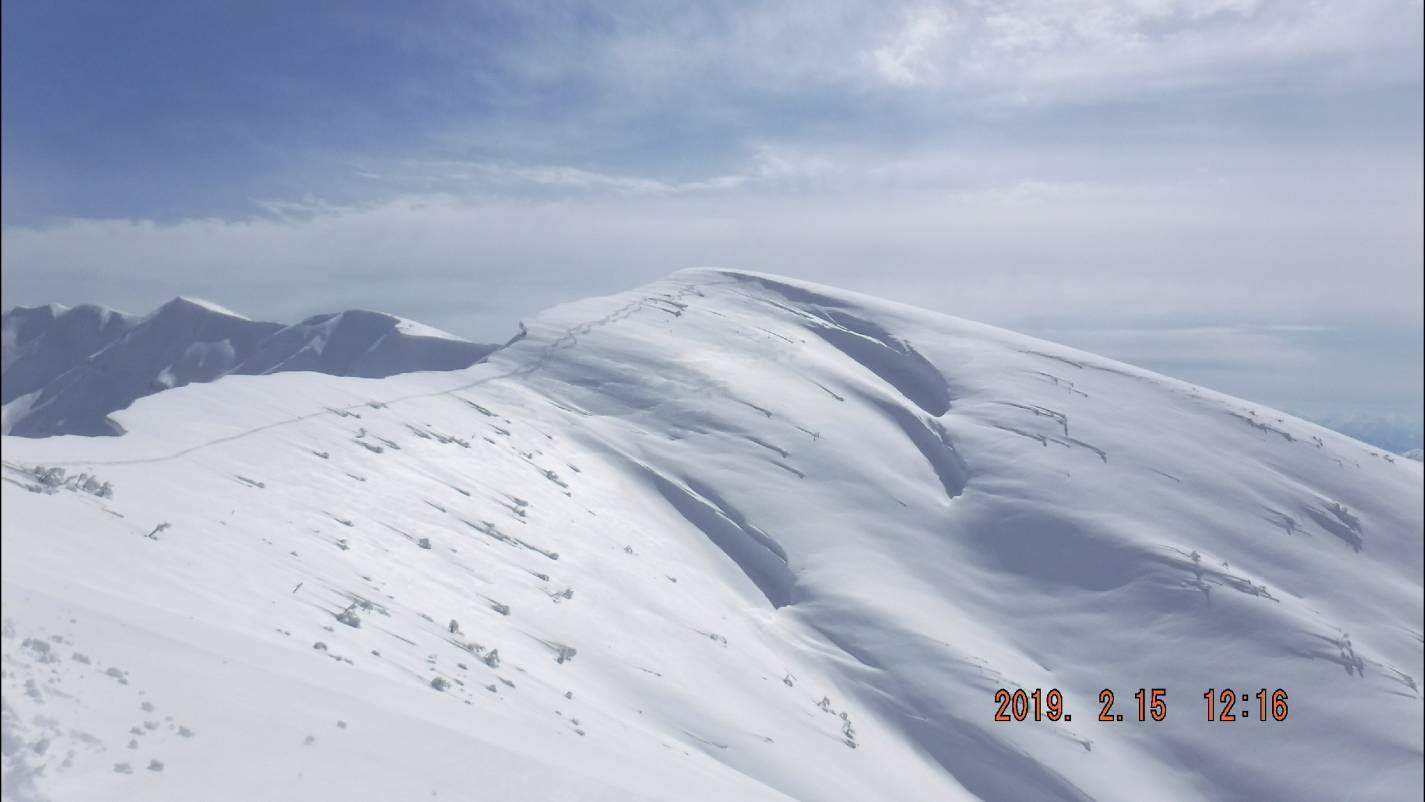 今シーズンは寒暖の差が大きく雨のあとの凍りつく山肌は山スキーにとっては条件が悪い。2月の初めの二王子岳では硬いクラスト雪面でラッセルはなかったが登りも下りも苦労した。
