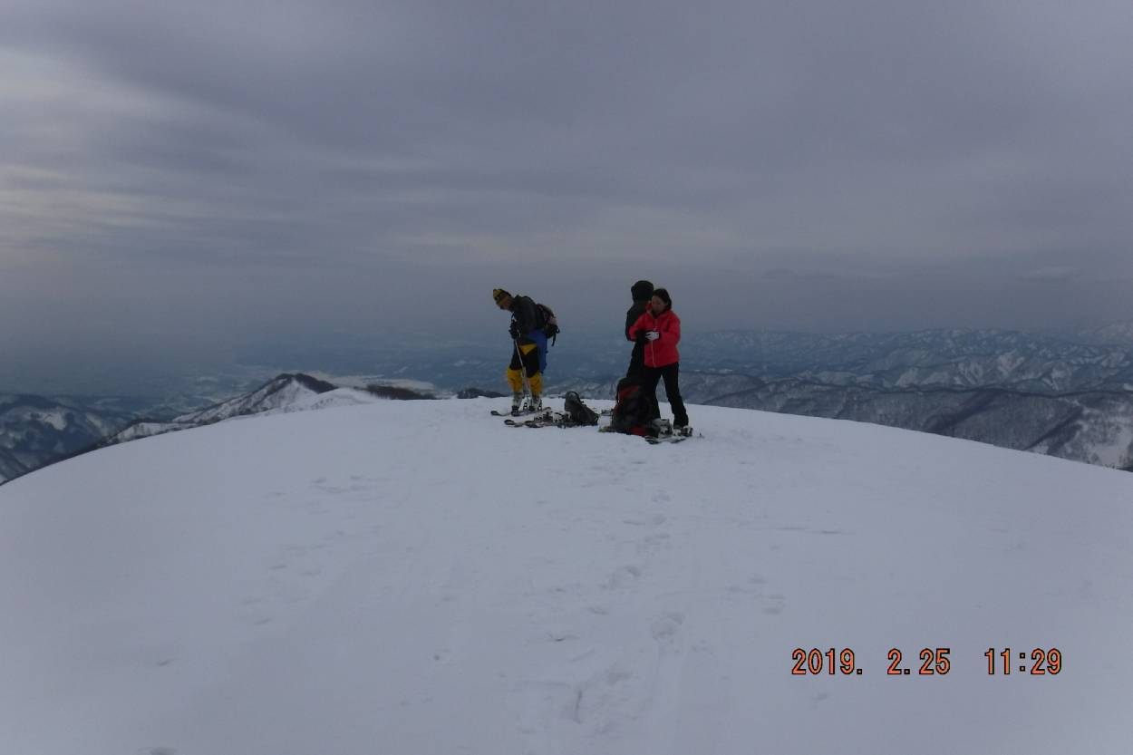 頂上到着 寒いのでシールを外し滑降準備