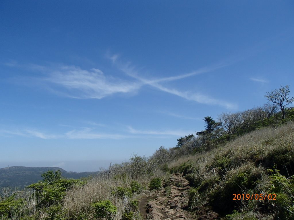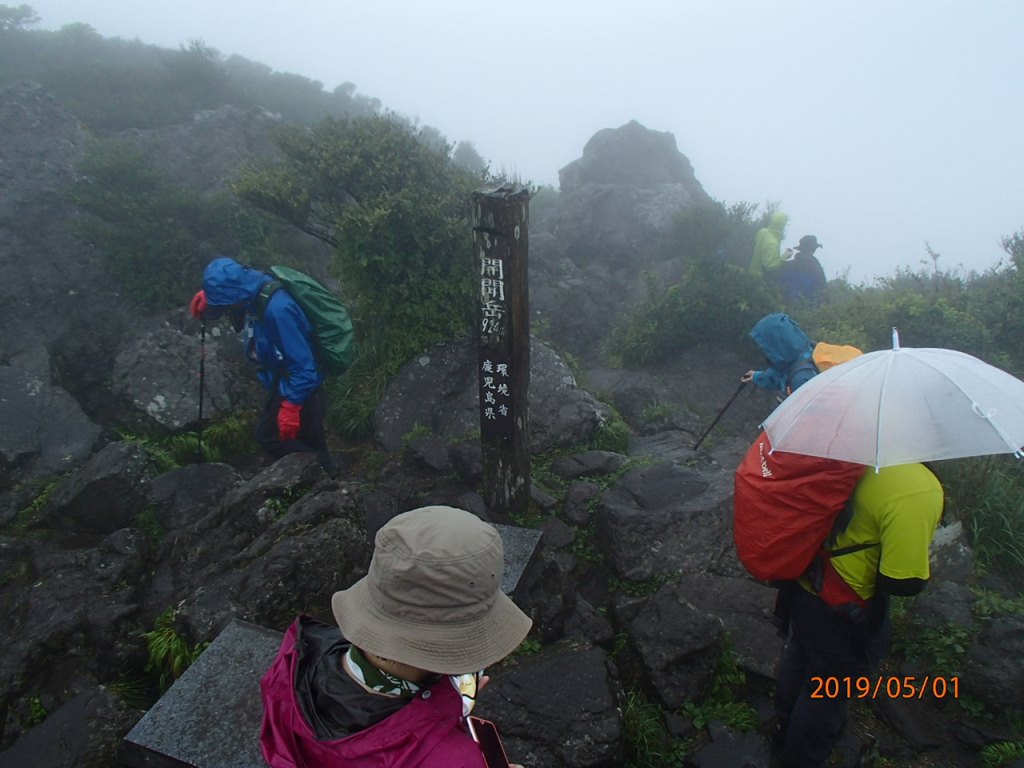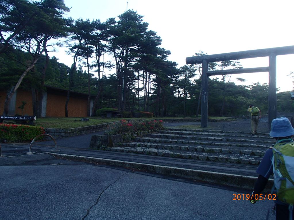 シートも倒せない中、当然熟睡できるはずもなく、うとうとしながら、5月1日、令和元年最初の朝を迎えた。午前4時30分、まだ薄暗い中、最初の目的地に向け再スタートする。鹿児島ICで降りて指宿スカイラインに乗る。スカイラインは霧に包まれ、展望はまったく無し。午前7時15分頃に、開聞岳の麓の公園駐車場に到着した。