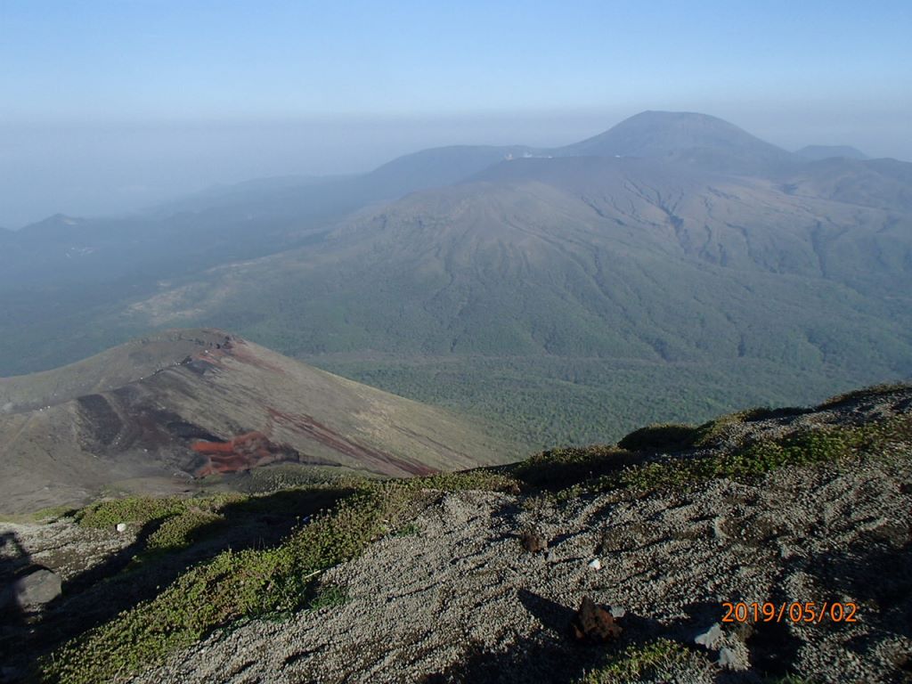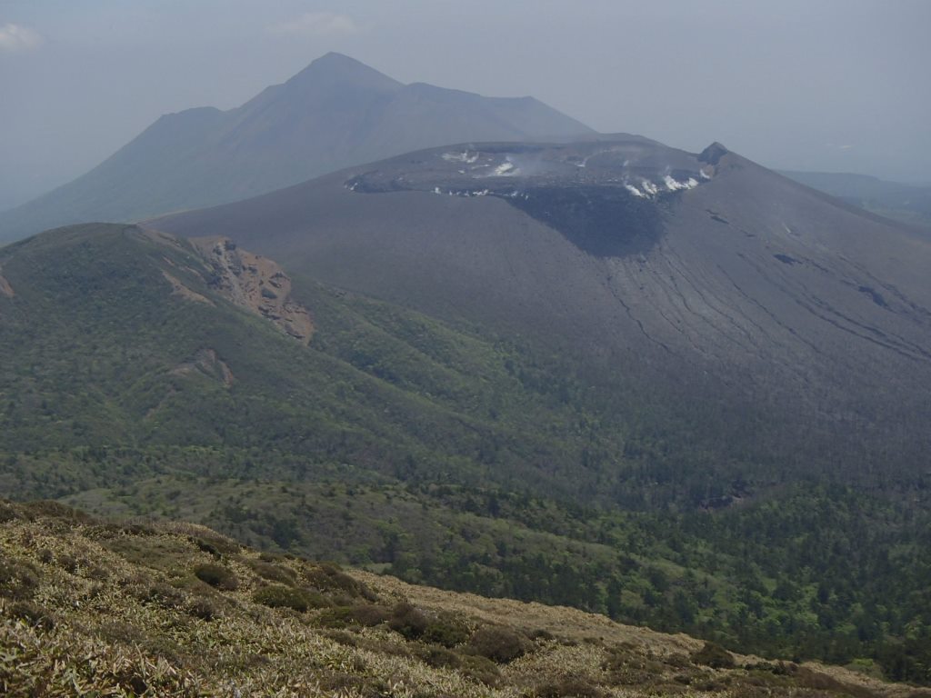 <韓国岳より新燃岳と高千穂峰>