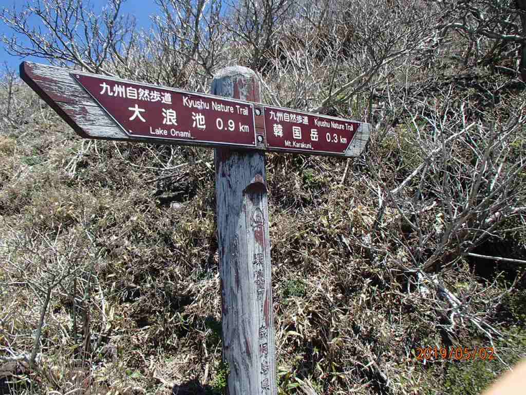 軽い朝食を取った後、名残惜しいが頂上を後に下山を開始する。快調に下り、一時間程で駐車場に着いた。さて今日はもう一山ある。そのままの格好で車に乗り、韓国岳の登山口である大浪池登山口に向かう。