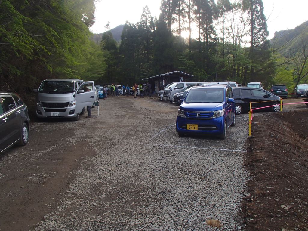 駐車場はもちろん満杯で、道路脇に沢山の車が駐車されている。登山口から徒歩5分位の所へ引き返し、駐車する。さあ、改めて出発だ。