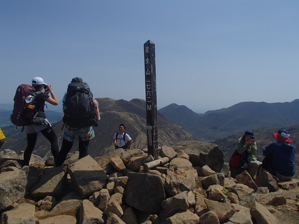 山塊が大きいので、ずいぶん歩いたような気がするが、2時間半位で九重山の主峰に到着。