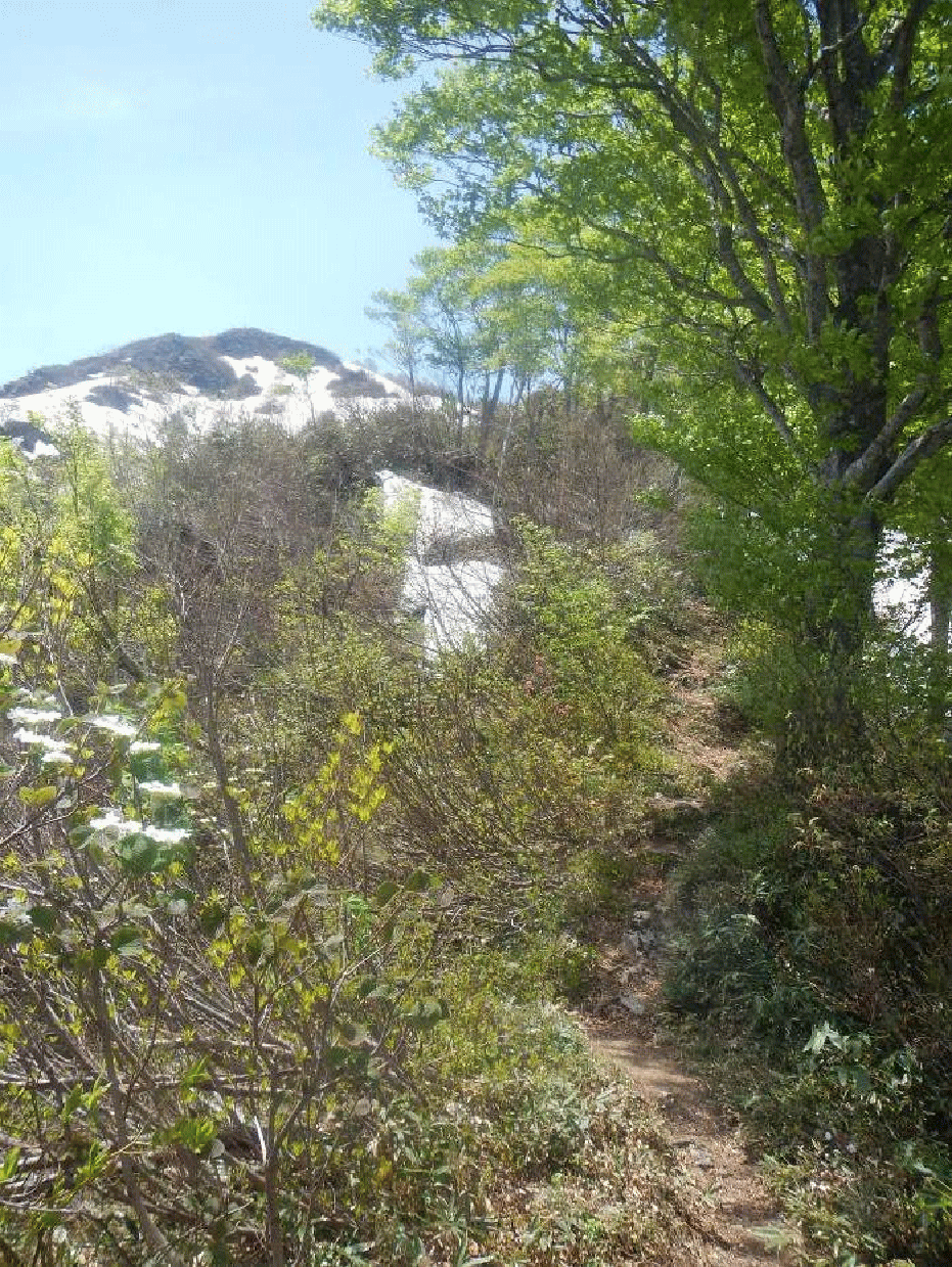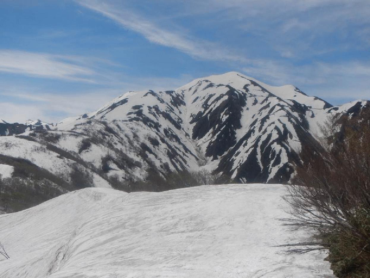 鎖場あたりから上が急斜面で雪の一枚バーンとなり、そこを越えると小倉山山頂だった。山頂からは素晴らしい展望が広がっていた。越後駒ヶ岳が大きくそびえ立っている。早春に登った日向倉山、ゴールデンウィークに登った平ヶ岳から見た越後駒ヶ岳は白く、本当に真っ白く輝いていた。それからまだ半月〜1ヶ月ほどしか経っていないのだけれど、季節は雪をスピードを上げて消していく。あっという間に雪は消え、夏の風情になるのだろう。