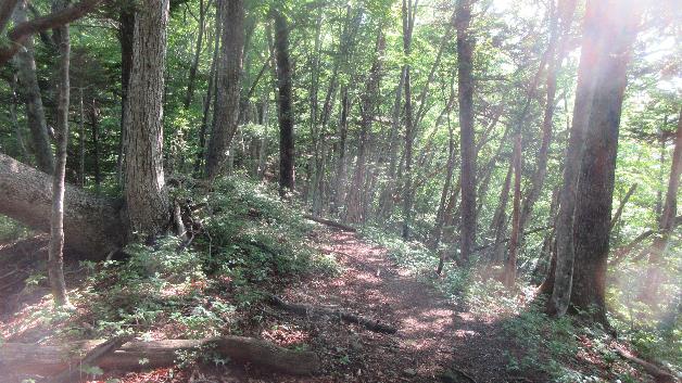 新区間の入口の看板には「上級者コース」と書いてあり、他にもクマがいるとか小屋がないとかいろいろ注意書きが綴られているが道は広く刈払われていて歩きやすい。