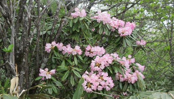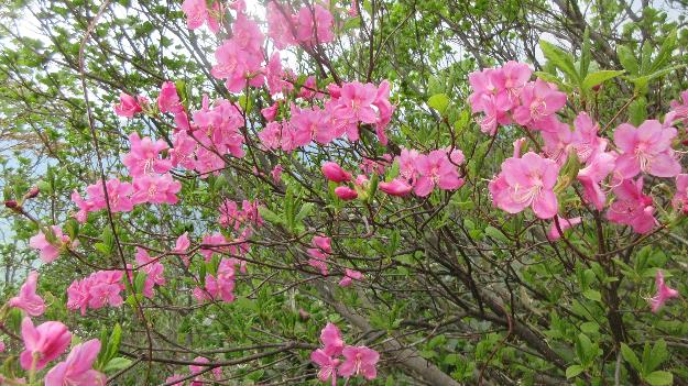 シャクナゲはなおも登山道を彩り、ミネザクラは3分咲きくらいで咲き始めていた。
