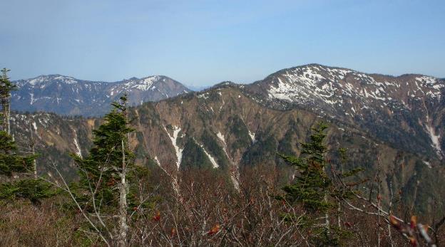 《白砂山と清津川源流部 背後は志賀高原の山々》
