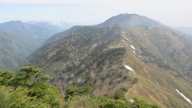 《上ノ間山から歩いてきた稜線を振り返る》