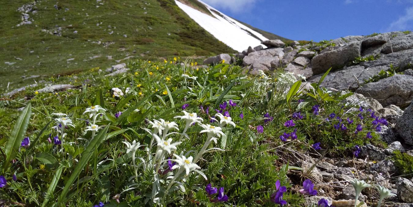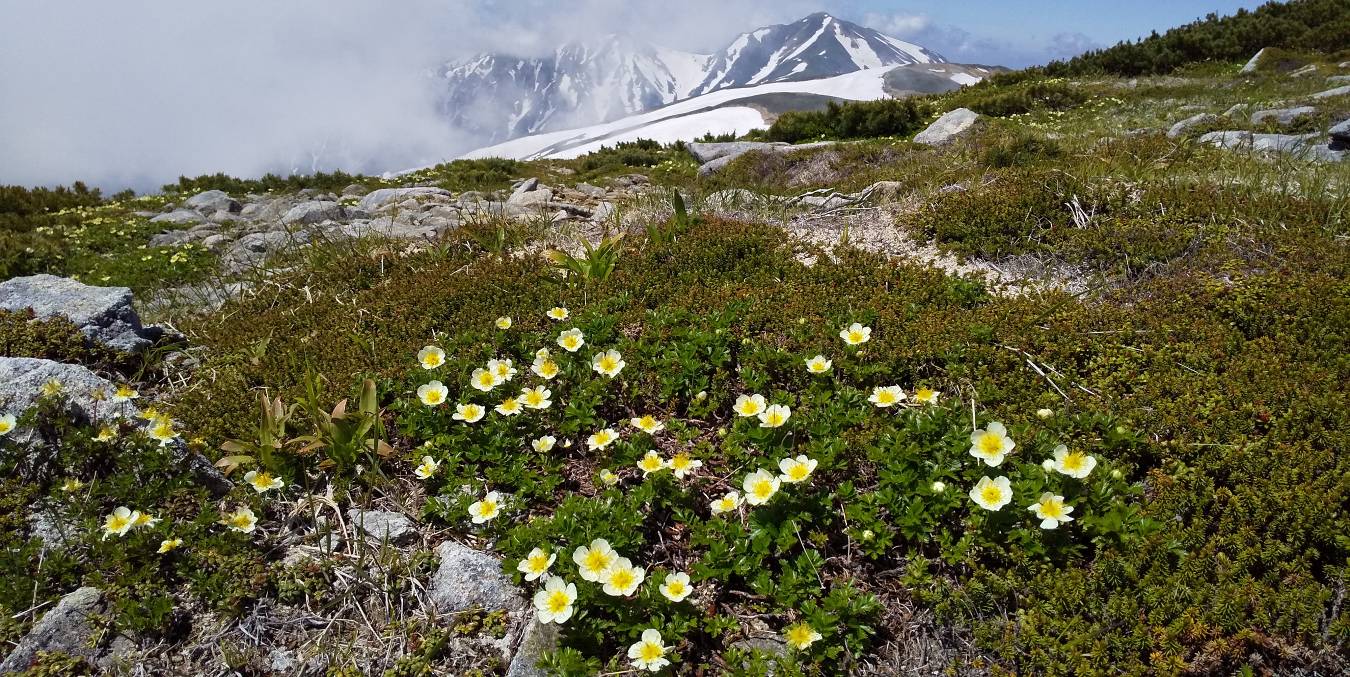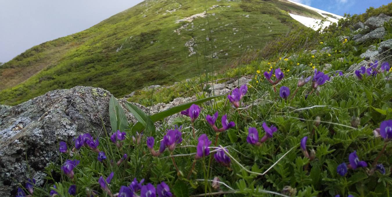 ウスユキソウとオヤマノエンドウ 御前坂付近で撮影