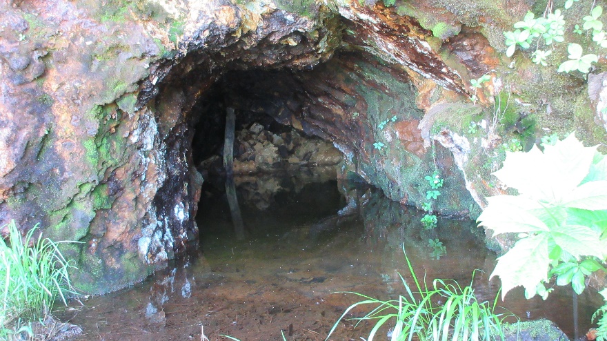 それをたどって行くと対岸に見えたものとは別の坑口があった。水が溜まっていたので中には入らなかったが、坑道を見ることができて満足だった。