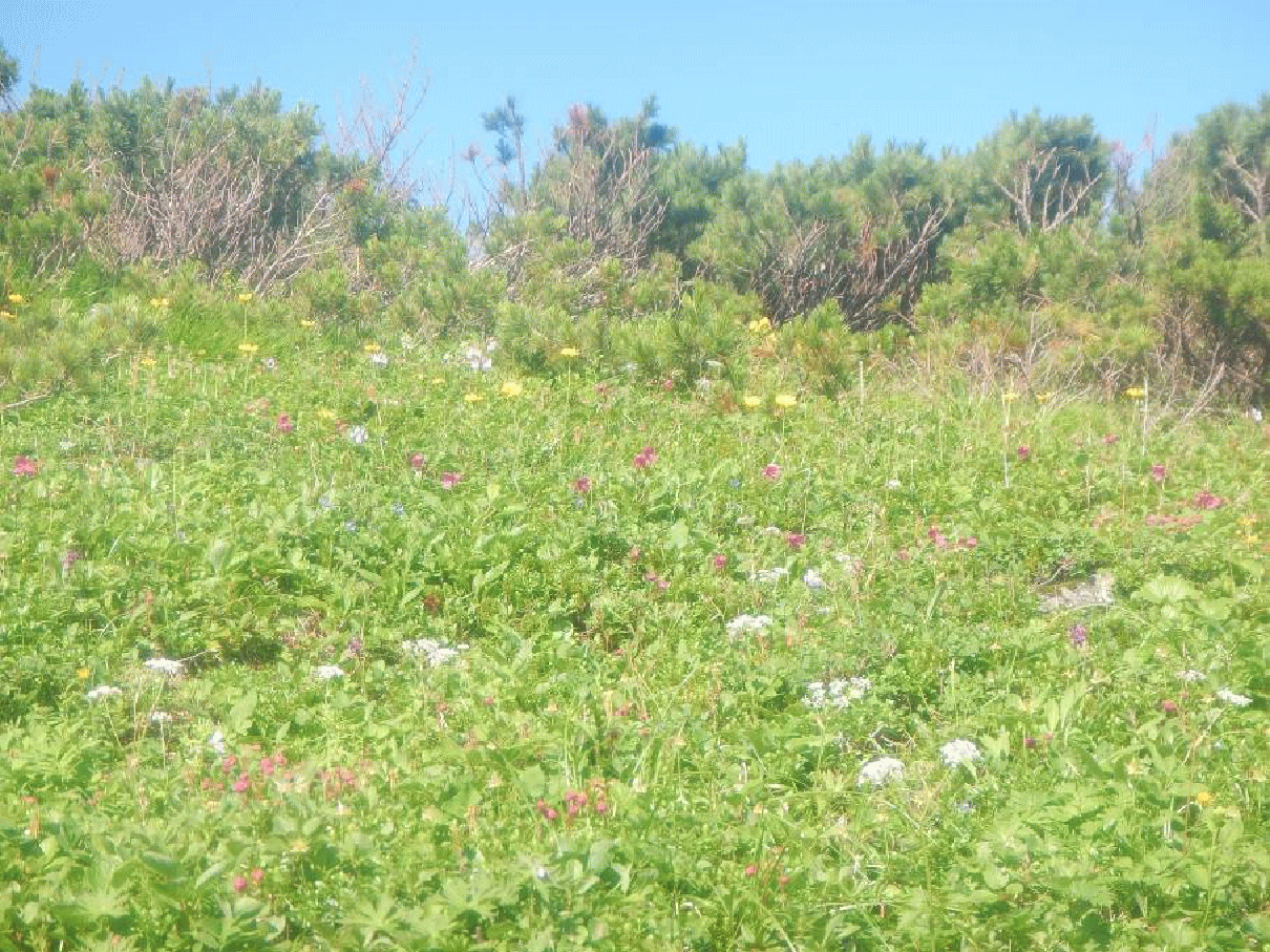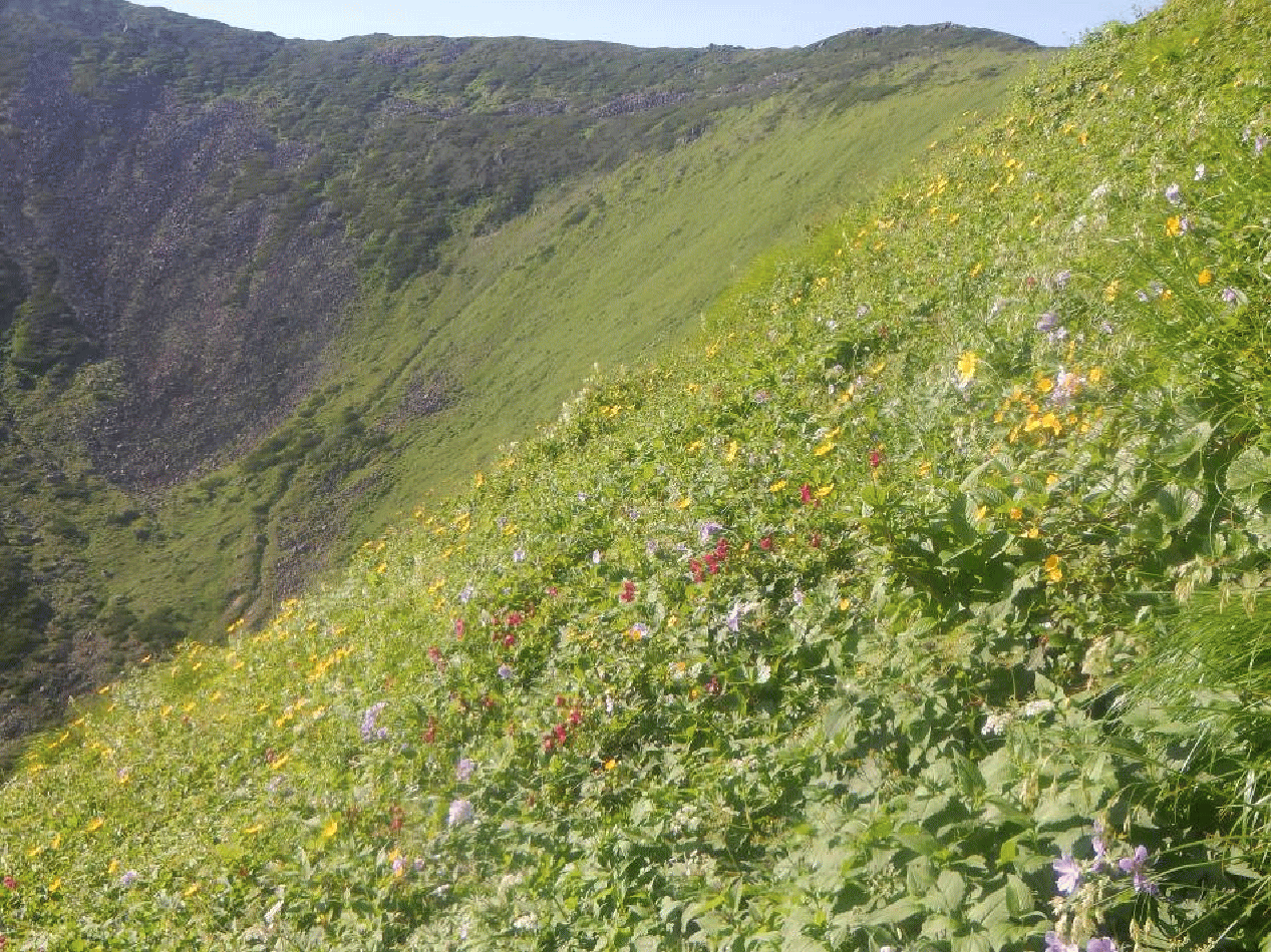 エゾツツジ、エゾヒメクワガタ、チシマフウロ、シナノキンバイ、エゾウサギギク、アズマギク、ミヤマリンドウ、エゾシオガマ、チシマギキョウ、チングルマ、ミヤマダイコンソウ、アオノツガザクラ、イワブクロ、ホソバツメクサ、ハクサンチドリ、などなど