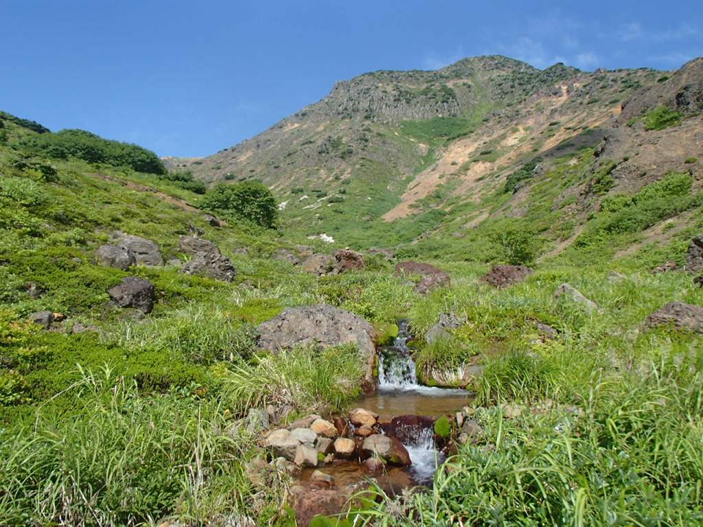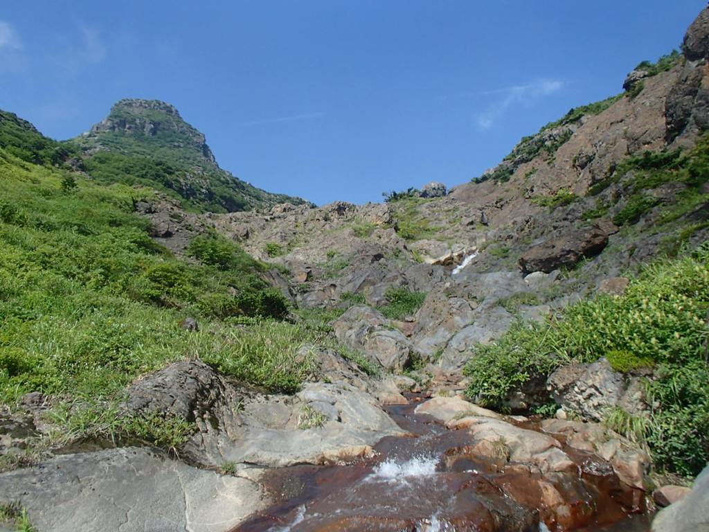登山 賽の河原駐車場発5:40〜ひよどり越え5:55〜濁川(振子沢出合い)6:20〜第一振子滝下7:20〜第1振子滝上7:45(昼食)〜第2振子滝上8:45〜五色岳鞍部〜御釜9:50〜ロバの耳コースに合流〜熊野岳山頂11:30-13:00〜刈田岳13:55