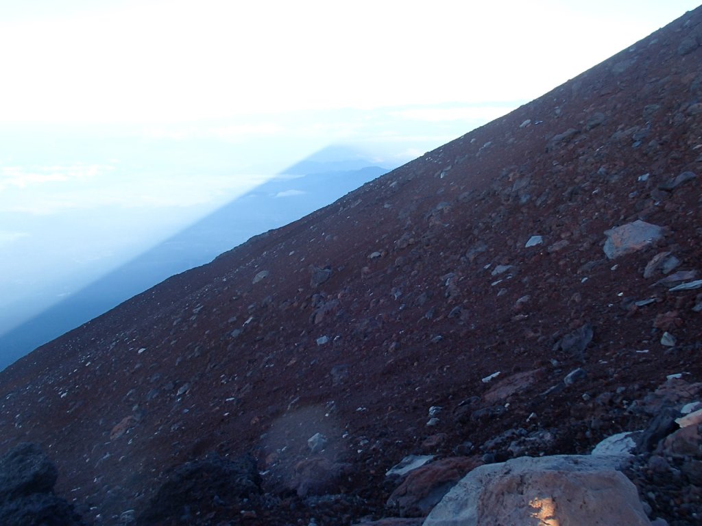 日の反対には影富士がくっきりと出でこれまたすごい、山頂であればもっと大きい影全体が見えるのであろう。影の面積はどのくらいなのか。とにかくスケールがでかい。