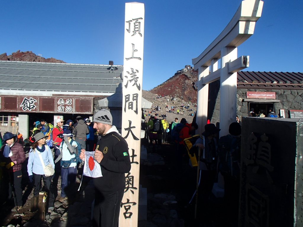 5時間以上を費やしてようやく山頂神社に到着。大勢の人で賑わっている。