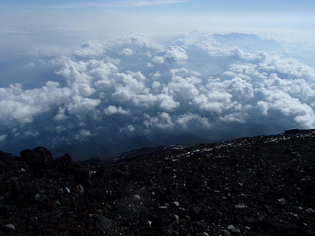 ぐるりとほぼ一周し、富士宮口のすぐ隣の御殿場口の下山口で御鉢巡りをしなかった2人と合流。聞けば、その後も並んでいたものの、ぜんぜん進まないので、剣ケ峰登頂は断念してきたとのこと。富士山は大きく、どこもかしこも素晴らしい。なんだか、あの一点にこだわることが、無意味に思えてきた。十分満足である。